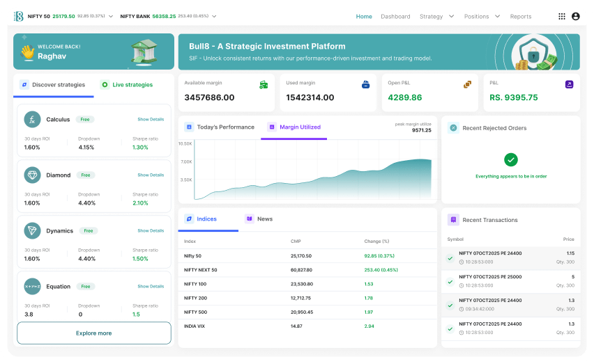 Algorithmic trading is the future of retail investing in India. It’s about making your money work smarter, not harder. With Bull8, you are not alone in this journey. We provide the tools, the infrastructure, and the intelligence to help you trade with discipline and precision.